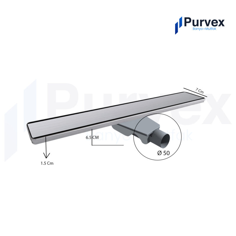 Purvex Lineer Duş Kanalı Paslanmaz Çelik Yan Çıkışlı