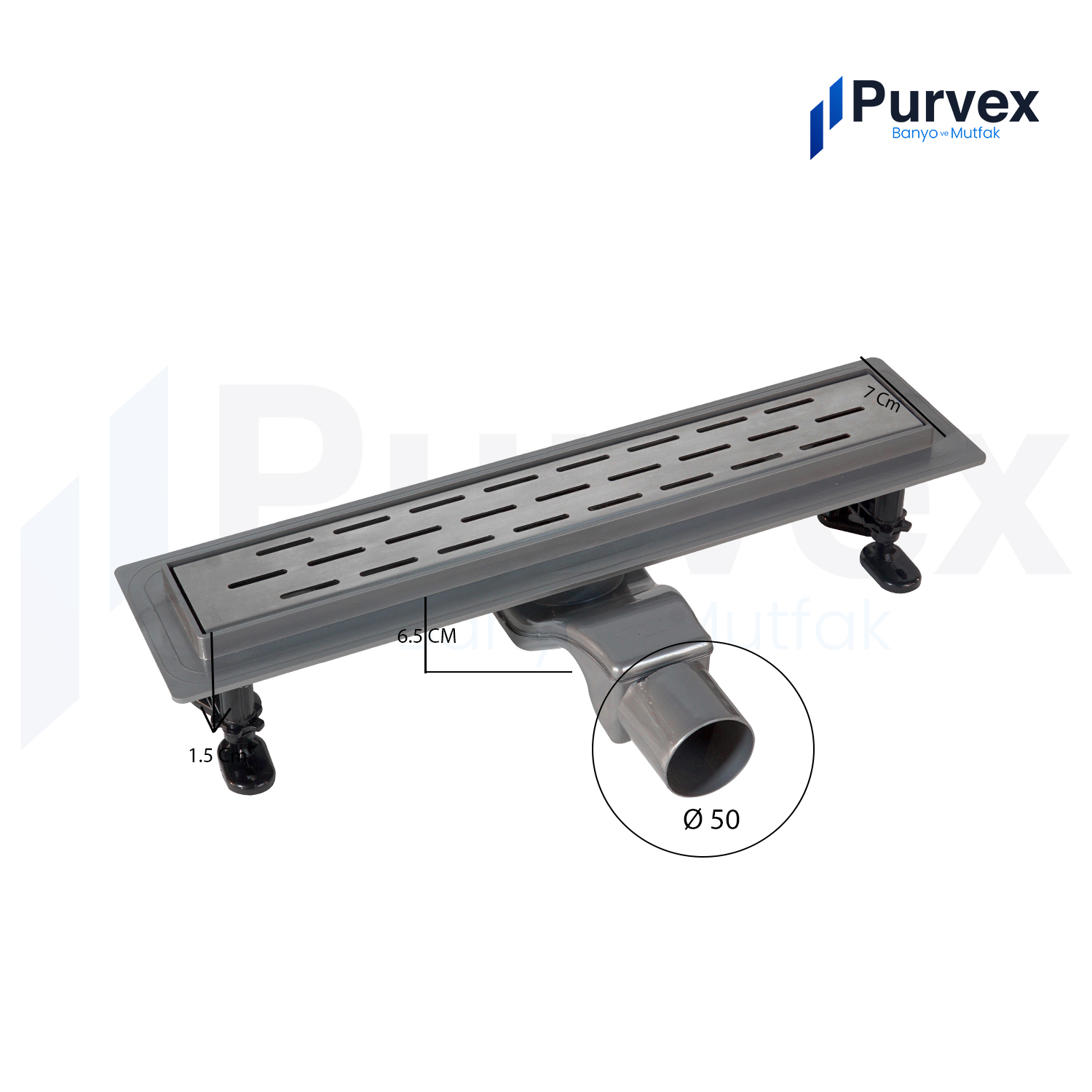 Purvex Lineer Duş Kanalı Paslanmaz Çelik Yan Çıkışlı