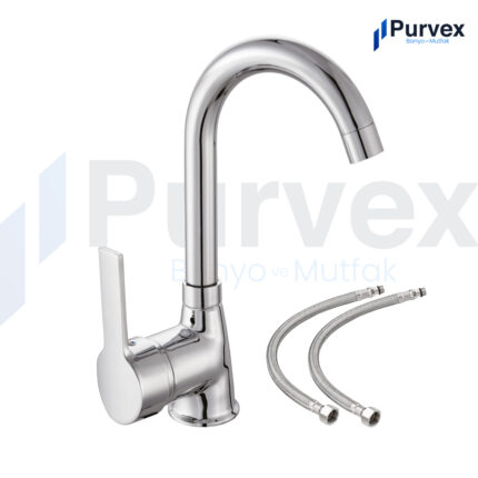 Purvex Delta, standart bağlantı ölçüleriyle tüm evye tiplerine kolayca monte edilir. Tek kollu kumanda sistemi sayesinde sıcak-soğuk su ayarı pratik ve hassas biçimde yapılabilir.